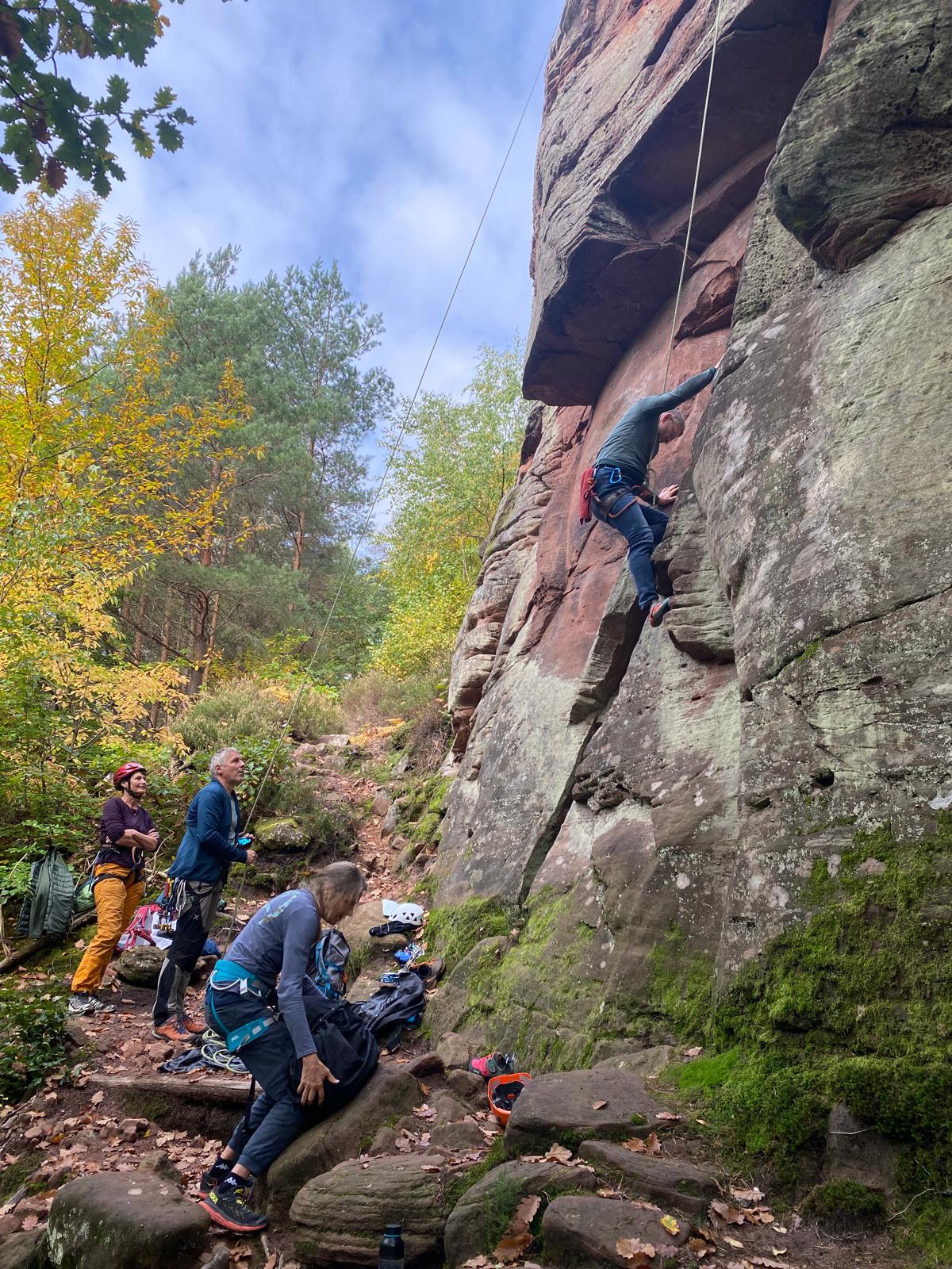 Wandern, Mountainbiken und Klettern im herbstlichen Pfälzer Wald waren die vorherrschenden Aktivitäten des von Tourenführer Peter Wamsler bestens organisierten Wanderabschlusses mit 18 Teilnehmern. Stützpunkt der dreitägigen Wochenendausfahrt vom 10.-12.10.2025 war das Hilschberghaus in Rodalben, wo die Teilnehmer in den Genuss bekannter pfälzischer Spezialitäten wie Saumagen oder Hoorische kamen. Am Freitag fuhren die meisten Teilnehmer 22 km auf dem anspuchsvollen Rodalber Felsenweg mit Mountainbikes. Andere Teilnehmer wanderten u.a. auf dem Dahner Felsenpfad. Am Samstag wanderten alle 18 Teilnehmer bei Sonne und blauem Himmel auf dem Rodalber Felsenweg. Am Sonntag war Klettern, Mountainbiken und Wandern angesagt. Ein gelungenes Wochenende für alle Teilnehmer lag hinter uns.
